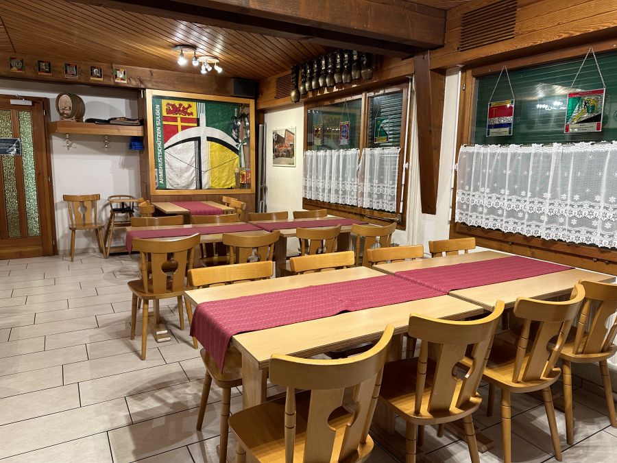 In der folgenden Bildergalerie, können Sie einen kleinen Rundumblick der Schützenstube erhaschen und auch die gedeckte Aussenflächen sehen, welche mit Biertisch-Garnituren bestuhlt oder einfach nur als Kinderspielplatz genutzt werden kann.